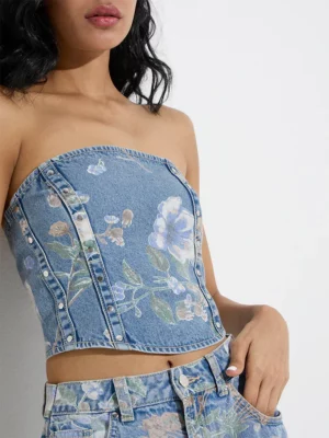 SKU: Denim Floral Co-ord Set – Strapless Corset Top & Wide-Leg Jeans Category: Tag: