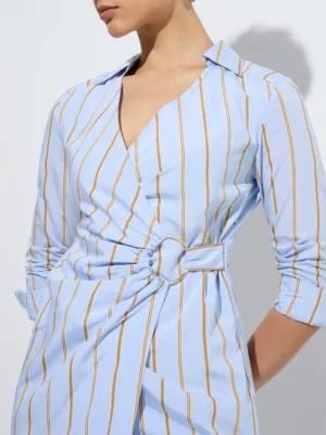 SKU: Ledger Stripe Ring-Waist Wrap Shirt Dress – Blue Category: Tag: