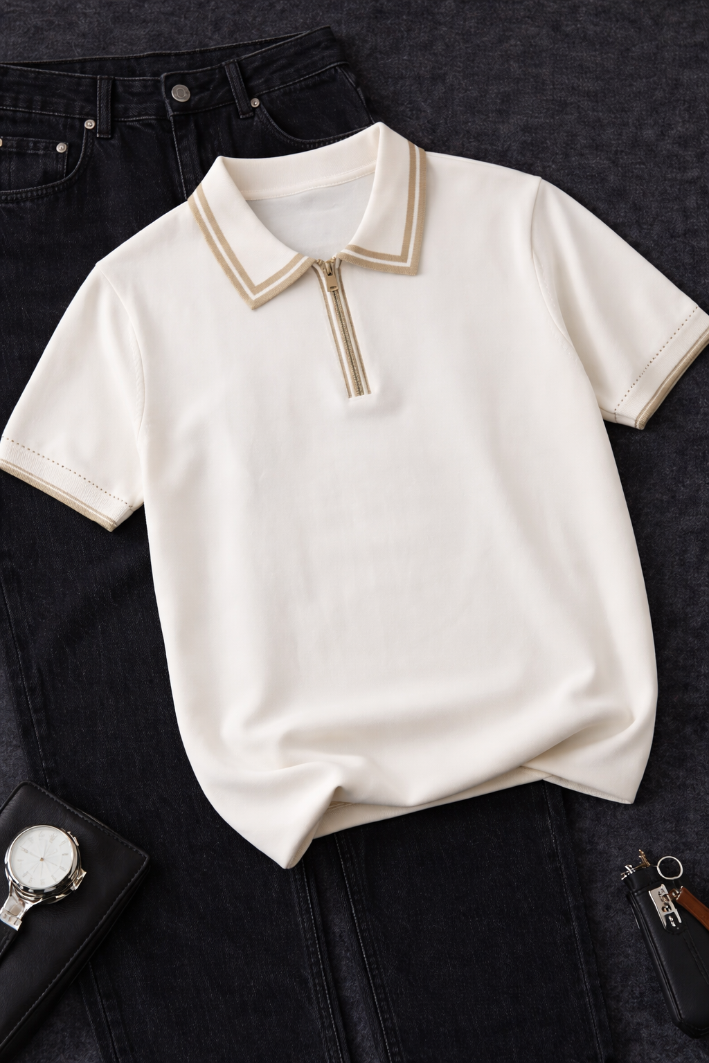 Men’s Black Polo T-Shirt & White Trousers Combo – Minimal Smart Casual Look