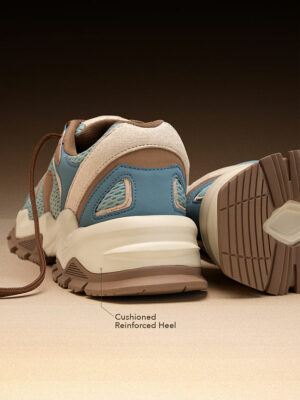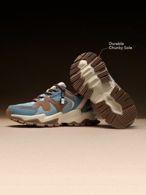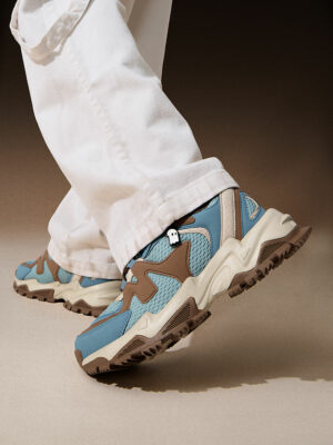 The color palette combines muted blue tones with earthy brown accents, striking the perfect balance between bold and versatile. These sneakers pair effortlessly with jeans, joggers, or tailored casual trousers, ensuring you look sharp in every setting—be it a casual Friday at the bank or a weekend street market stroll.