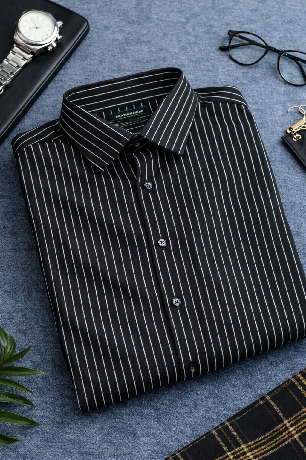 The clean striped pattern adds a timeless appeal, while the structured collar and tailored fit enhance your overall appearance. Crafted from soft and breathable fabric, this shirt ensures all-day comfort—making it ideal for long work hours or formal occasions.