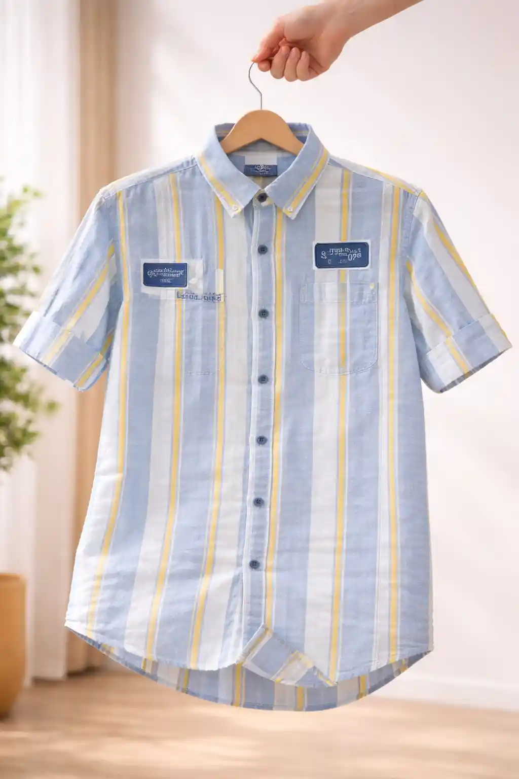Refresh your wardrobe with this stylish men’s premium striped shirt, designed for a clean and contemporary look. Featuring a soothing light blue base with vertical yellow and white stripes, this shirt delivers a fresh and vibrant summer vibe.