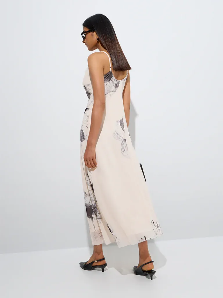 SKU: Monochrome Muse Cowl-Neck Floral Midi Dress – Beige/Black Category: Tag: