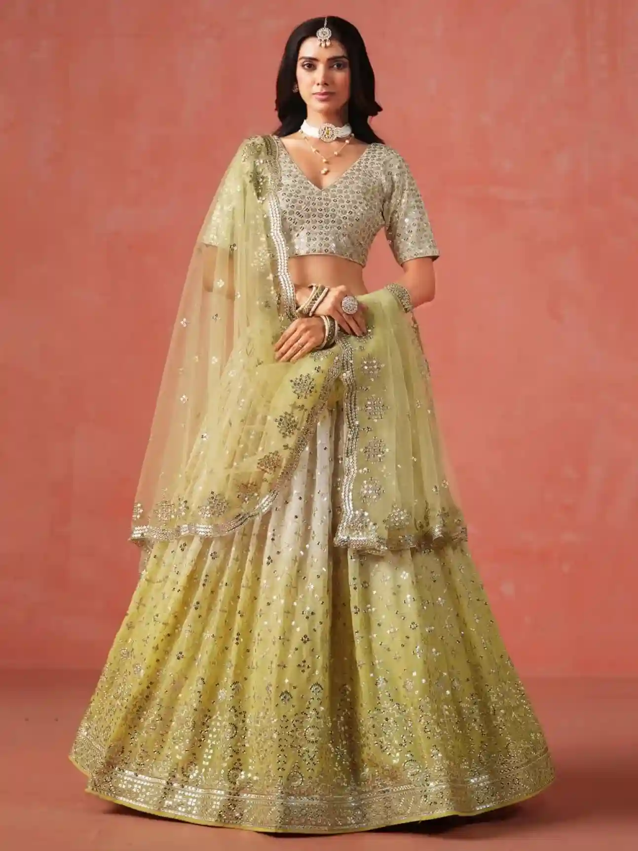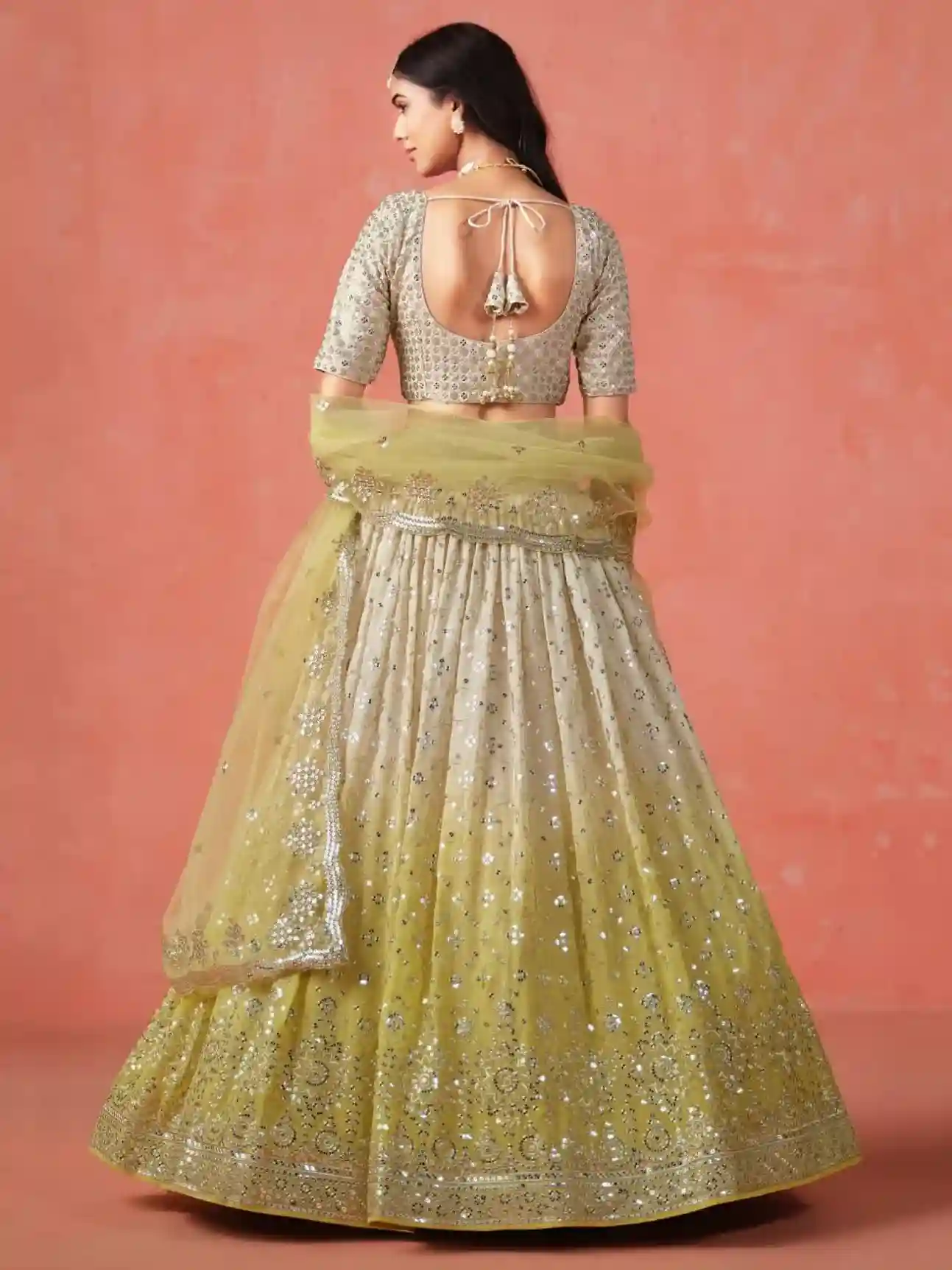 Soft Yellow-Beige Ombre Georgette Lehenga Choli with Mirror & Sequin Embroidery