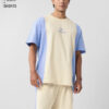 The oversized T-shirt features a lavender and grey color-block design, a classic round neck, and regular sleeves, giving it a striking visual contrast while maintaining casual wearability. The matching utility cargo joggers are built for function and style, featuring multiple flap pockets for storage, a mid-rise fit, and elasticated cuffs for a tapered, athletic look.