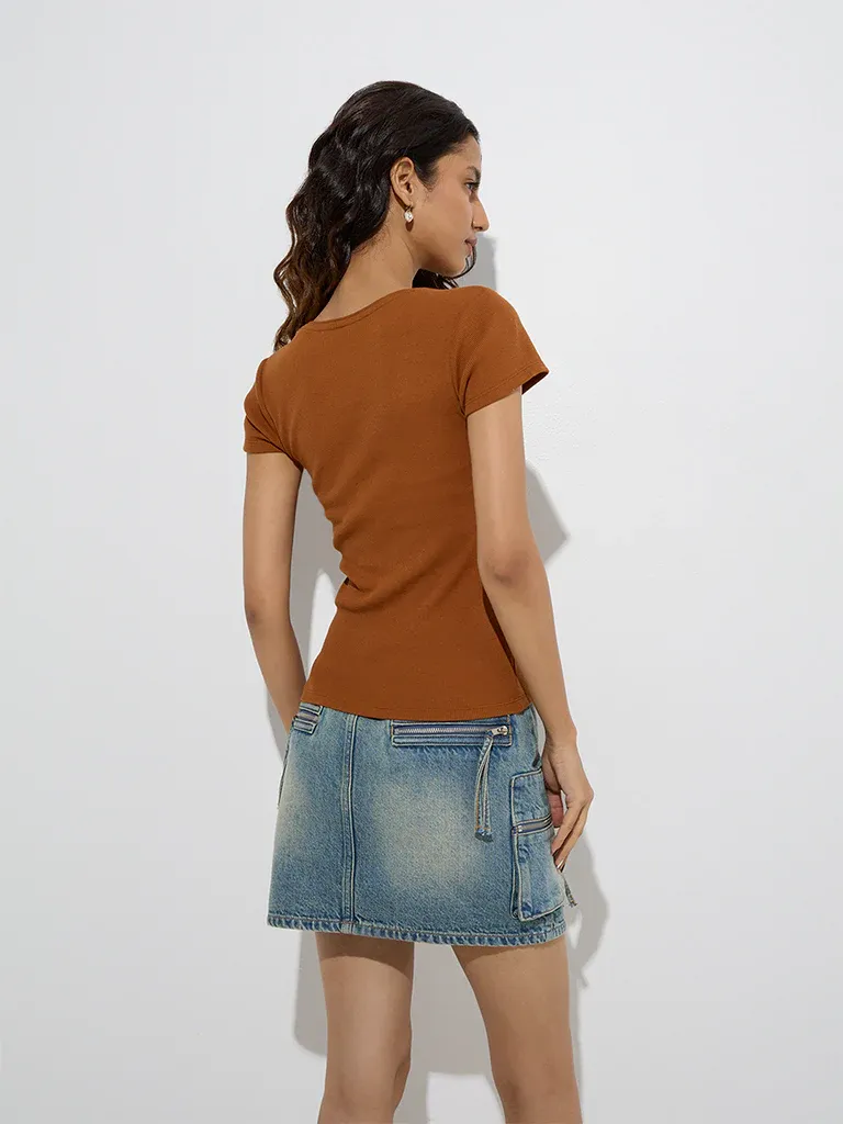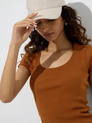 Bring warmth, style, and comfort together with the Ginger-Brown Scoop Neck Fitted T-Shirt, a versatile wardrobe essential that transitions effortlessly from casual daytime looks to polished, layered ensembles. Its rich, earthy hue adds a unique pop of color while staying neutral enough to complement a wide range of bottoms and accessories.