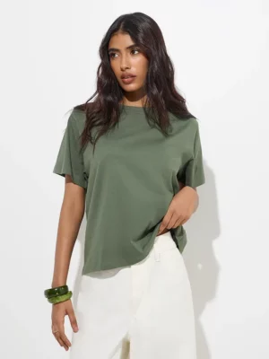 SKU: Women’s Olive Green Relaxed-Fit T-Shirt Categories: , Tag: