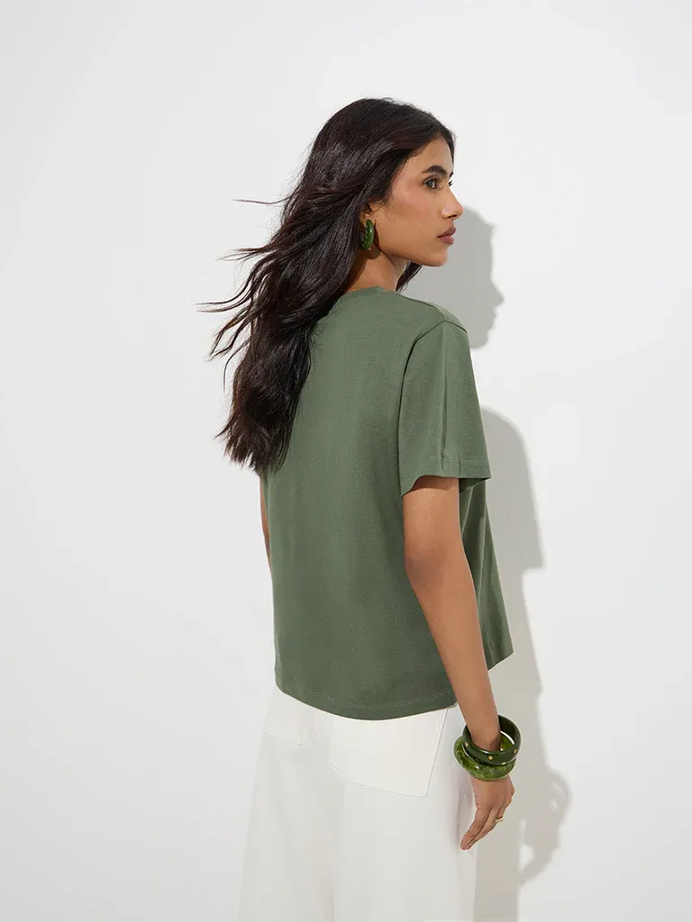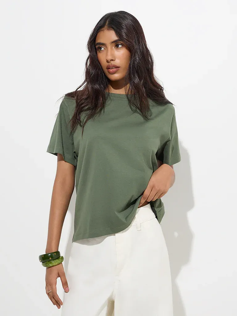 Women’s Olive Green Relaxed-Fit T-Shirt