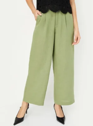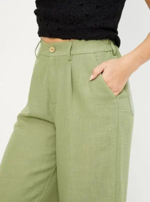 The muted olive green shade is a versatile color that pairs beautifully with both neutral tones and vibrant hues. Whether you’re heading to the office, brunch, or an evening event, these pants adapt to every dress code with ease.