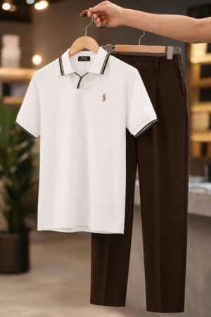 Men’s Smart Casual Set – Ribbed Polo T-Shirt with Tailored Pants